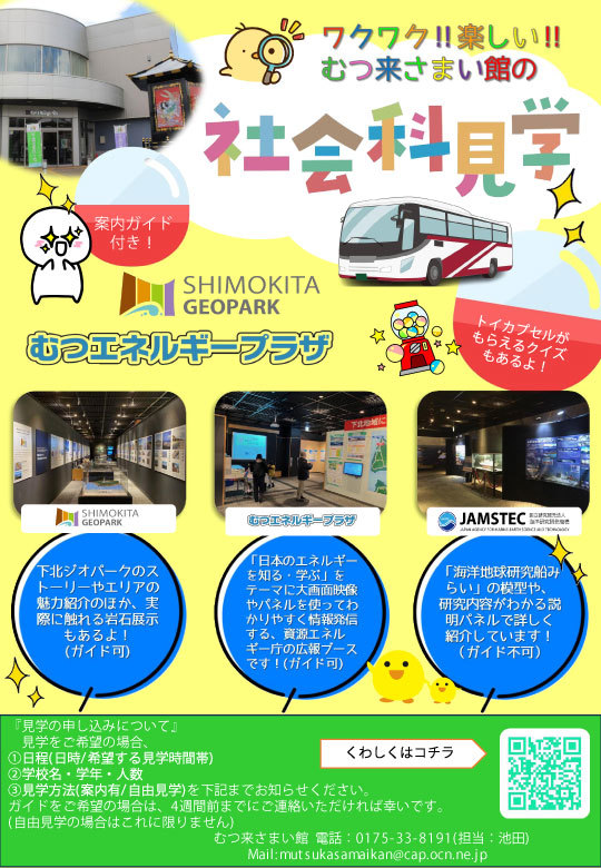 下北ジオパークビジターセンター、むつエネルギープラザでは専門のガイド案内も可能です。